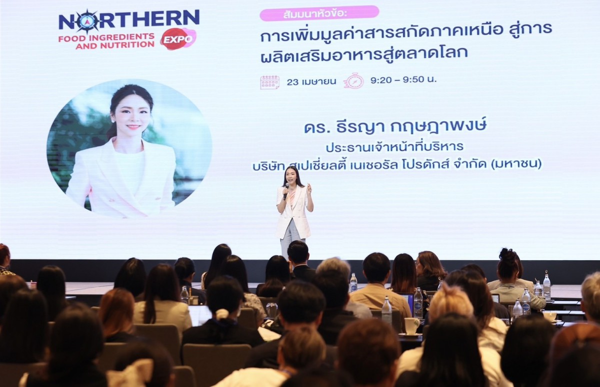 ดร.ธีรญา กฤษฎาพงษ์ ประธานเจ้าหน้าที่บริหาร บริษัท สเปเชี่ยลตี้ เนเชอรัล โปรดักส์ จำกัด (มหาชน) หรือ SNPS เข้าร่วมงานสัมมนาและแสดงนวัตกรรม “ส่วนผสมอาหารและสารสกัดภาคเหนือ เชื่อมโยงภูมิปัญญาท้องถิ่นสู่มาตรฐานสากล” ซึ่งจัดโดย Vitafoods Asia งานแสดงสินค้าและการประชุมเชิงวิชาการระดับนานาชาติที่รวบรวมนวัตกรรมด้านอาหารเพื่อสุขภาพ ผลิตภัณฑ์เสริมอาหาร สมุนไพร และสารสกัดจากธรรมชาติจากทั่วภูมิภาคเอเชียแปซิฟิก โดยได้รับเกียรติร่วมบรรยายในหัวข้อการเพิ่มมูลค่าสารสกัดภาคเหนือสู่การผลิตเสริมอาหารสู่ตลาดโลก จัดขึ้นเพื่อส่งเสริมการพัฒนาอุตสาหกรรมอาหารและสมุนไพรของภาคเหนือ ด้วยการนำภูมิปัญญาท้องถิ่นมาผสานกับเทคโนโลยีสมัยใหม่ เพื่อยกระดับสู่ผลิตภัณฑ์คุณภาพระดับสากล งานดังกล่าวได้รับความสนใจจากผู้ประกอบการในท้องถิ่น นักวิจัย นักวิชาการ และยืนยันถึงความมุ่งมั่นในการผลักดันการใช้ทรัพยากรท้องถิ่นอย่างยั่งยืน ณ ห้องแกรนด์บอลรูม ชั้น 2 โรงแรมอินเตอร์คอนติเนนตัล จ.เชียงใหม่