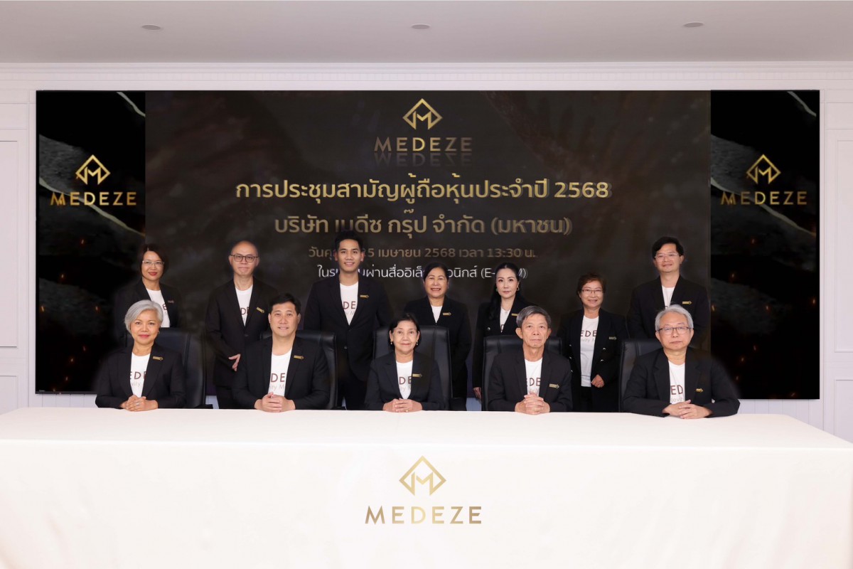 ดร.วัชรี ถิ่นธานี ประธานกรรมการ นายแพทย์วีรพล เขมะรังสรรค์ ประธานเจ้าหน้าที่บริหาร บริษัท เมดีซ กรุ๊ป จำกัด (มหาชน) “MEDEZE” พร้อมด้วยคณะกรรมการบริษัท ฯ เข้าร่วมการประชุมสามัญผู้ถือหุ้นประจำปี 2568 ในรูปแบบการประชุมผ่านสื่ออิเล็กทรอนิกส์ (E-AGM) เพื่อรายงานผลการดำเนินงานประจำปี 2567 ที่ผ่านมา บริษัทได้รายงานผลประกอบการที่เติบโตอย่างต่อเนื่อง สะท้อนความเชื่อมั่นของลูกค้าในด้านคุณภาพการให้บริการและศักยภาพของบริษัท โดยที่ประชุมผู้ถือหุ้น มีมติอนุมัติทุกวาระการประชุม รวมถึงวาระการพิจารณาการจ่ายปันผลในอัตราหุ้นละ 0.08 บาทต่อหุ้น ซึ่งกำหนดรายชื่อผู้ถือหุ้นที่มีสิทธิได้รับเงินปันผลในวันที่ 7 พฤษภาคม 2568 (Record Date) และกำหนดวันจ่ายเงินปันผลในวันที่ 22 พฤษภาคม 2568 ณ บริษัท เมดีซ กรุ๊ป จำกัด (มหาชน) สำนักงานใหญ่ พุทธมณฑลสาย 4