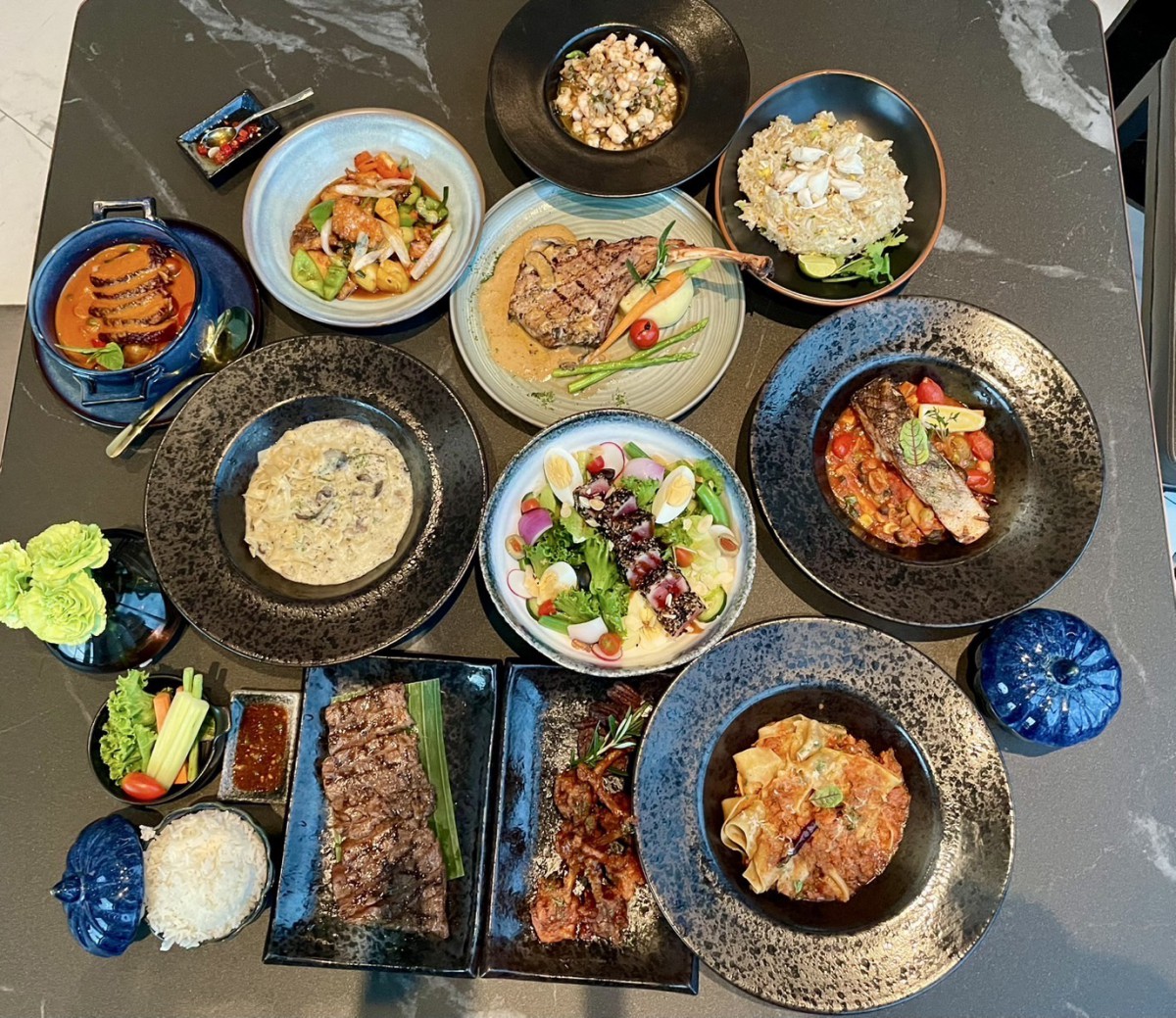 Homemade Pasta (ปัปปาร์เดลเล ไส้กรอกสไปซี่ซอสรากู, เฟตตูชินี ซอสอัลเฟรโดทรัฟเฟิล, โฮมเมดเฟตตูชินี ซอสเพสโต้กับแซลมอน, ปัปปาร์เดลเลเนื้อซอสรากู, เนื้อสันในไทยวากิวย่าง, เบอร์เกอร์เลเวลฟิฟตี้, แครบเค้ก, ผัดไทยกุ้งสด, กุ้งผัดพริกขี้หนู