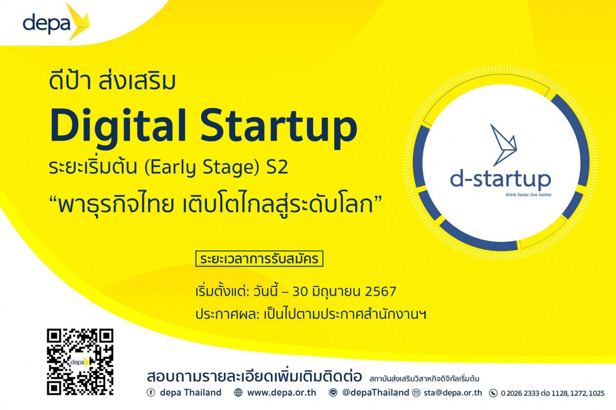 4 มกราคม 2567, กรุงเทพมหานคร – ดีป้า เดินหน้าเสริมแกร่งศักยภาพดิจิทัลสตาร์ทอัพสัญชาติไทยในระยะเริ่มต้น เปิดรับข้อเสนอโครงการส่งเสริมและสนับสนุนการลงทุนหรือประกอบกิจการจากดิจิทัลสตาร์ทอัพในกลุ่มอุตสาหกรรมเพื่อสุขภาพ บริการภาครัฐ การท่องเที่ยว เกษตรกรรม การศึกษา การบริการ การเงิน และเมืองอัจฉริยะ ภายใต้มาตรการช่วยเหลือหรือการอุดหนุนเพื่อการเริ่มต้นธุรกิจอุตสาหกรรมดิจิทัล ผู้สนใจสามารถศึกษารายละเอียดเพิ่มเติมได้ที่ www.depa.or.th/startup สมัครได้แล้ววันนี้ถึงวันที่ 30 มิถุนายนนี้